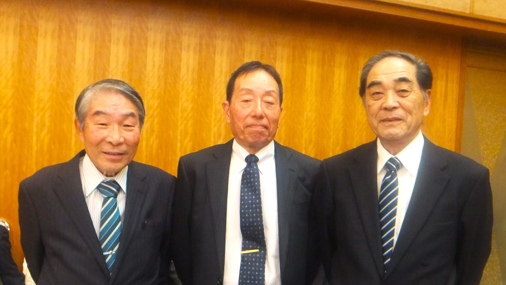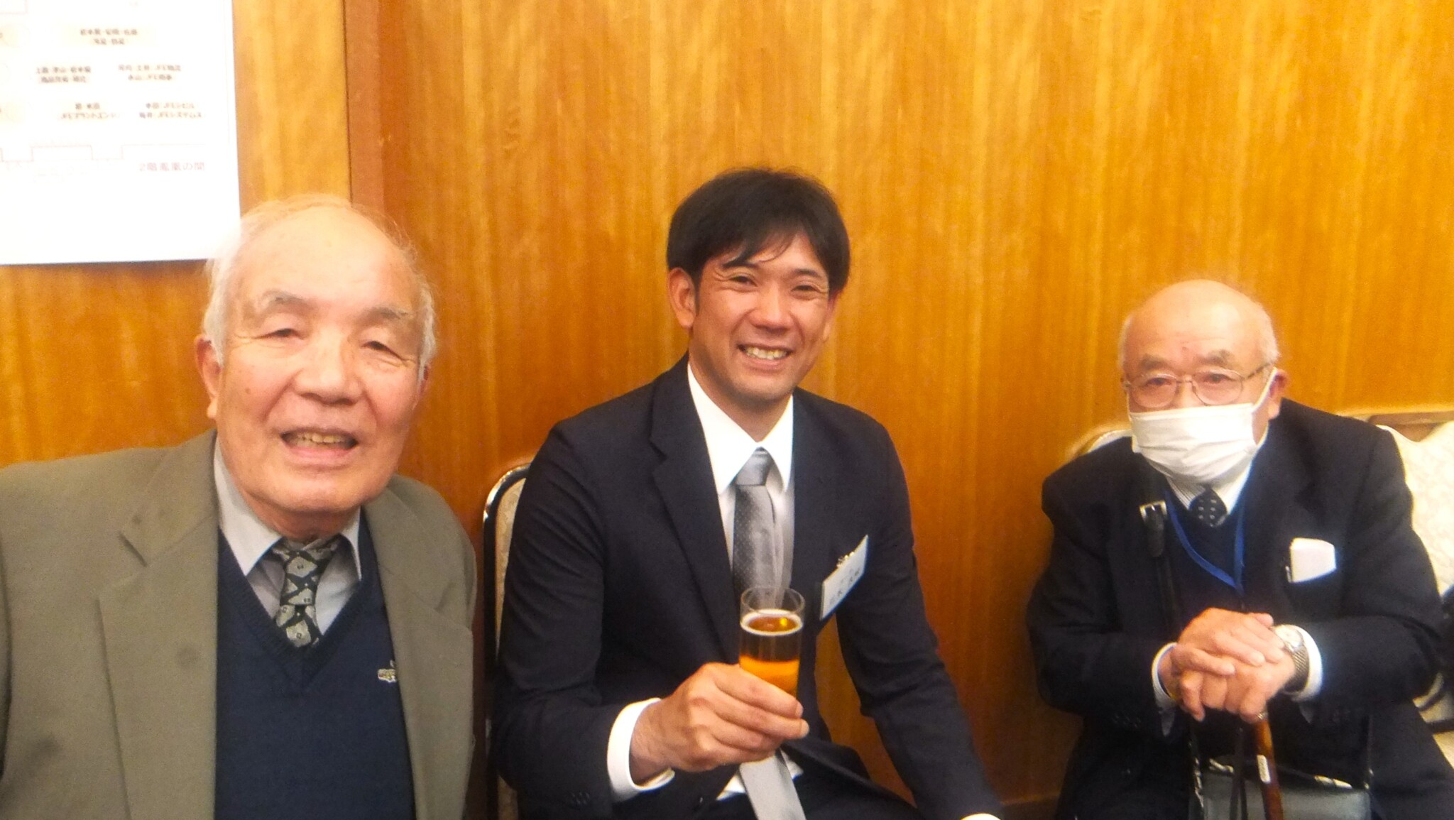 R7年12月15日野球部納会・左から岡﨑・桑原・林の皆さん方