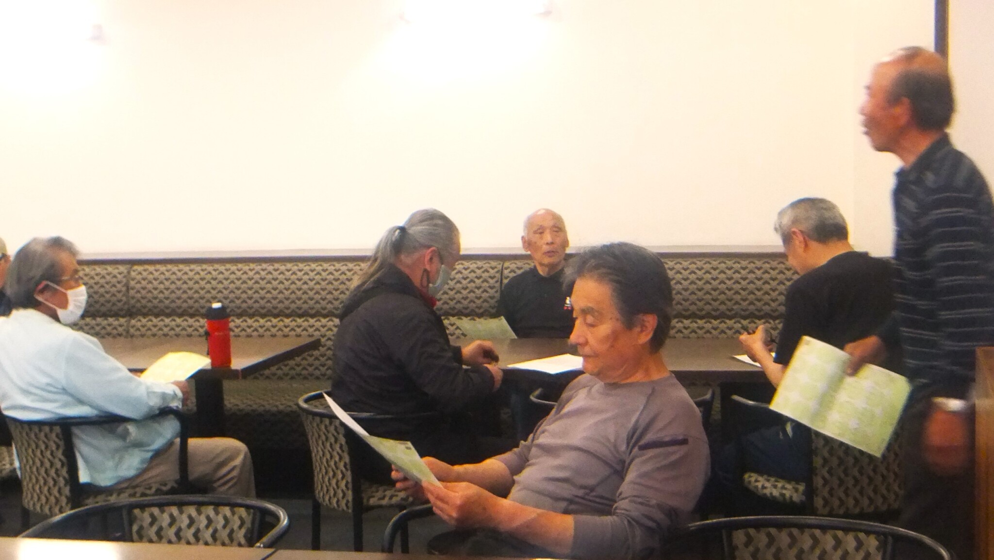 R8.2.10月例会 受付中.左から川上浩只さん 赤瀬朝喜さん