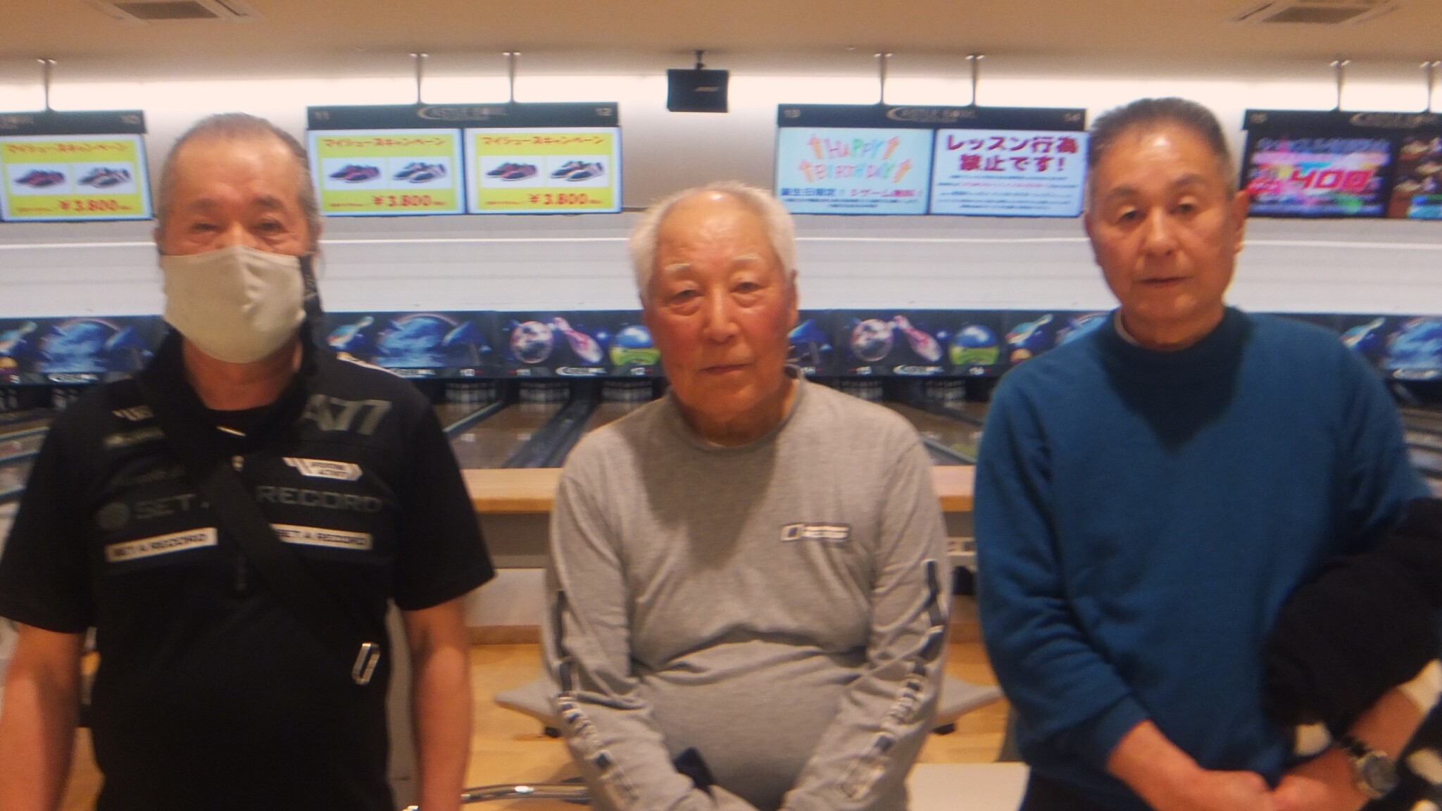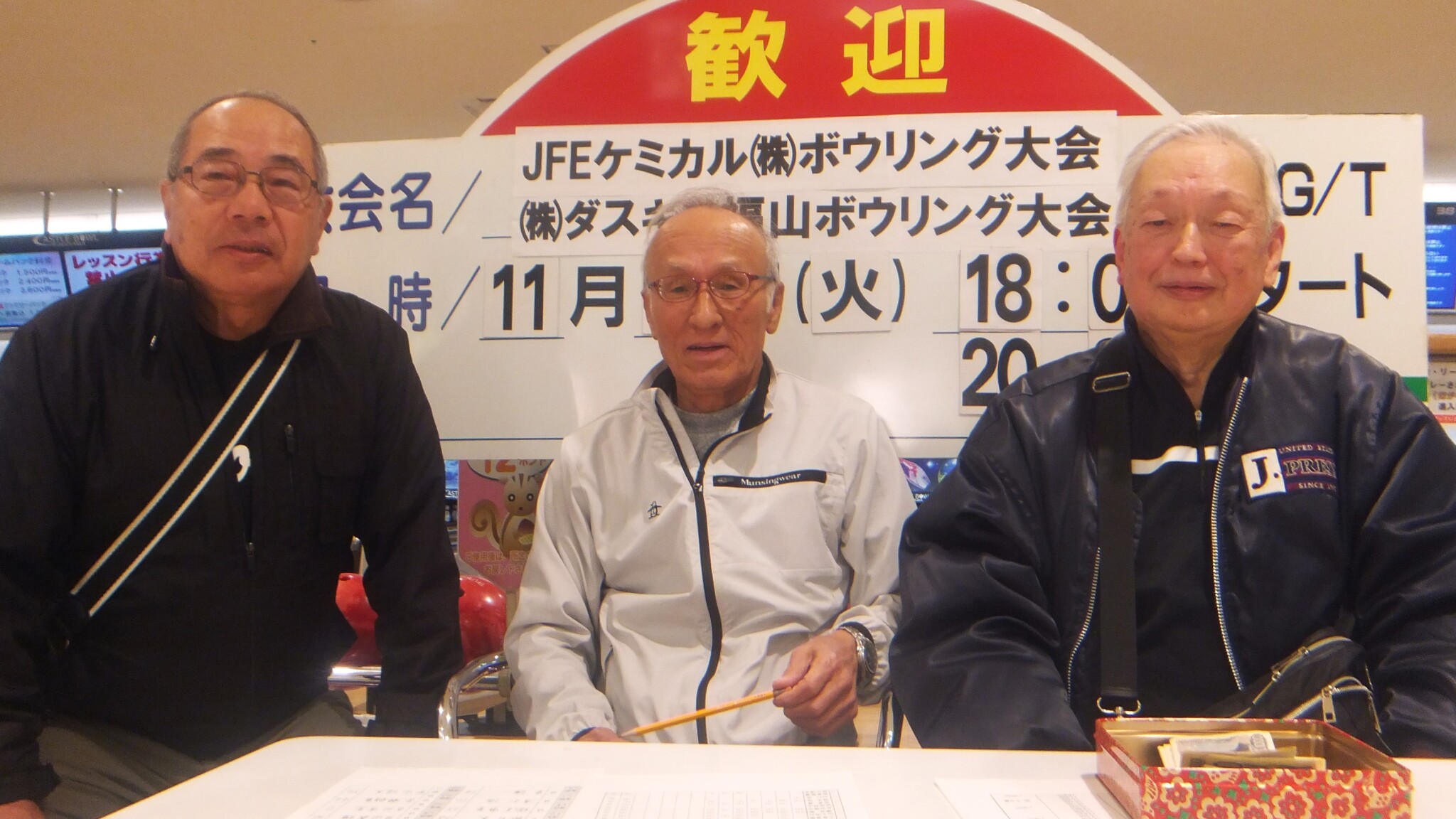 R7.11・18月例会結果.左から3位斧田 隆光さん・優勝村井 慶雄さん・2位川上 浩只さん